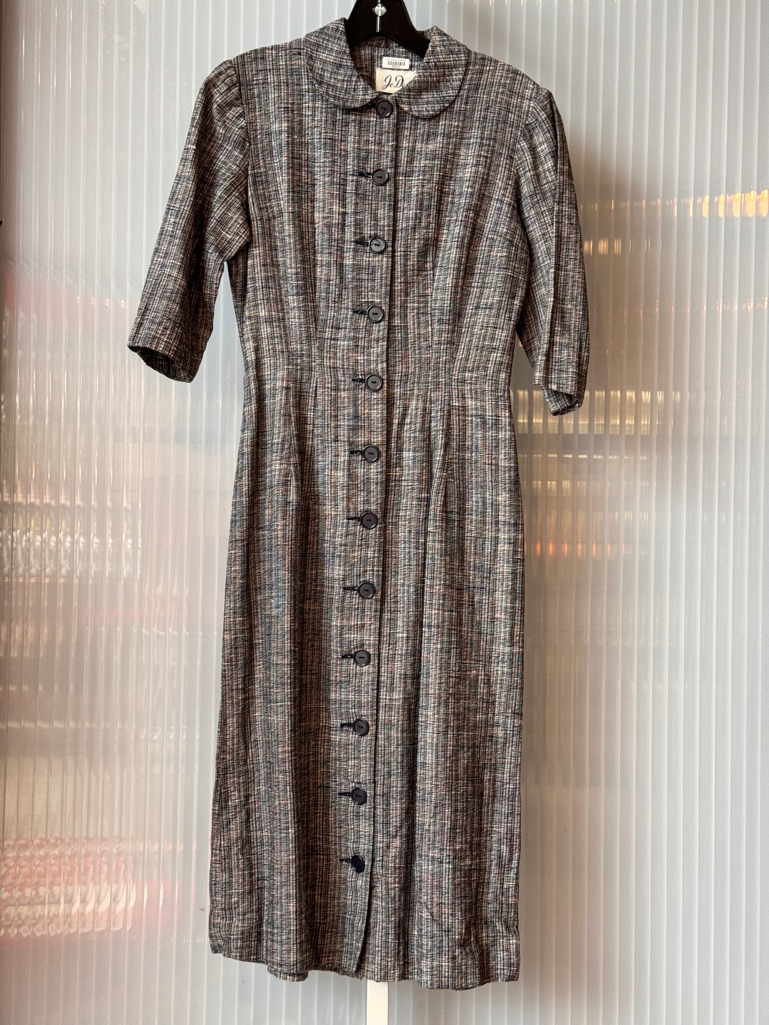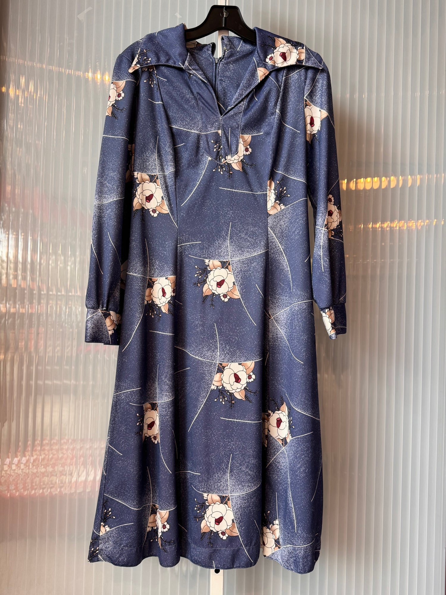 1970s Sears Slate Blue Floral Dress w/ Sash