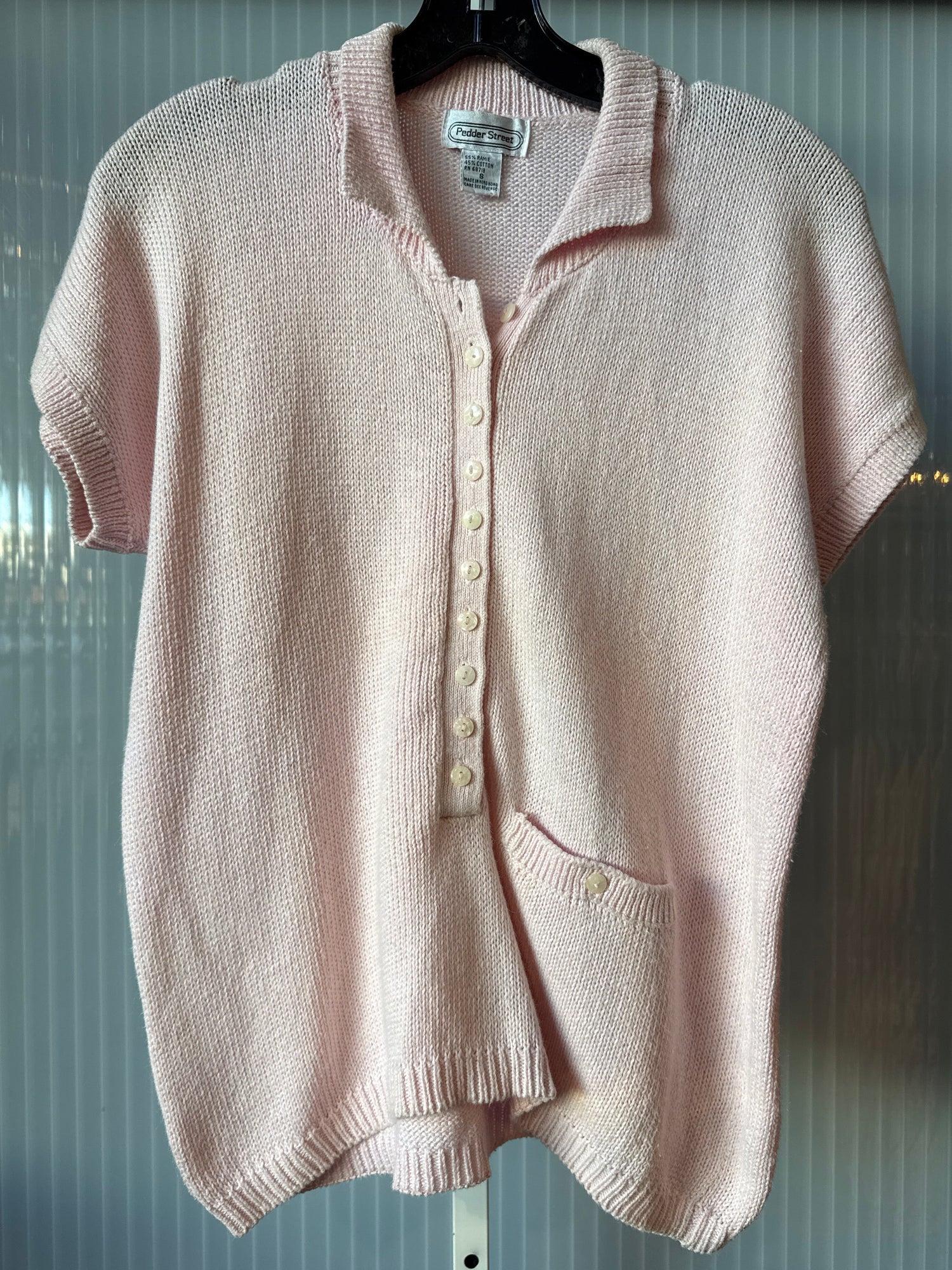 1980s Pink 3/4 Button-Up Short Sleeve Knitted Sweater