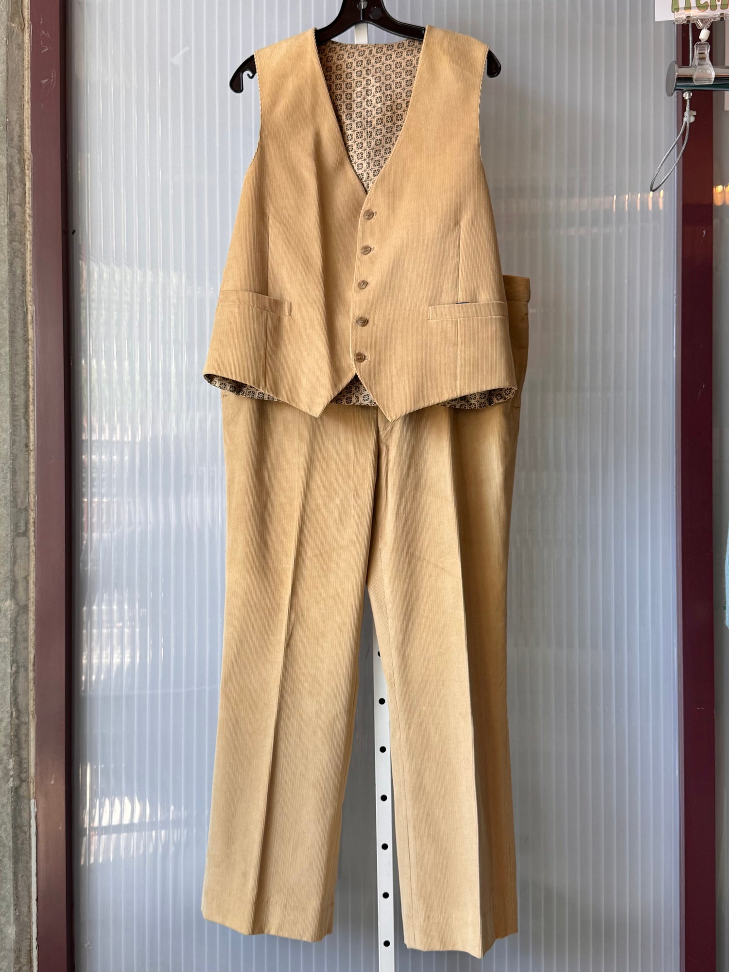 1970s Cream Corduroy Vest & Pants Suit Set