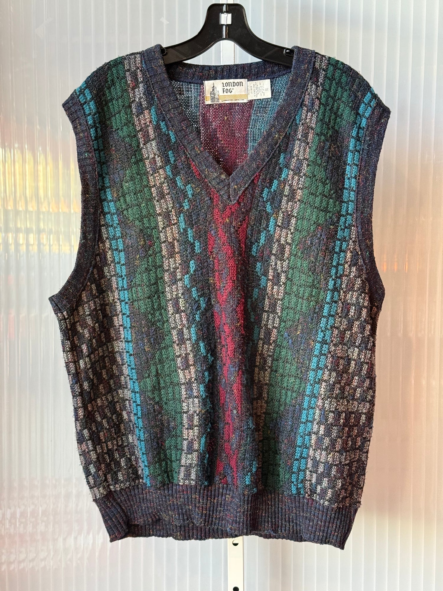 1980s London Fog Multicolor Chunky Knit Sweater Vest