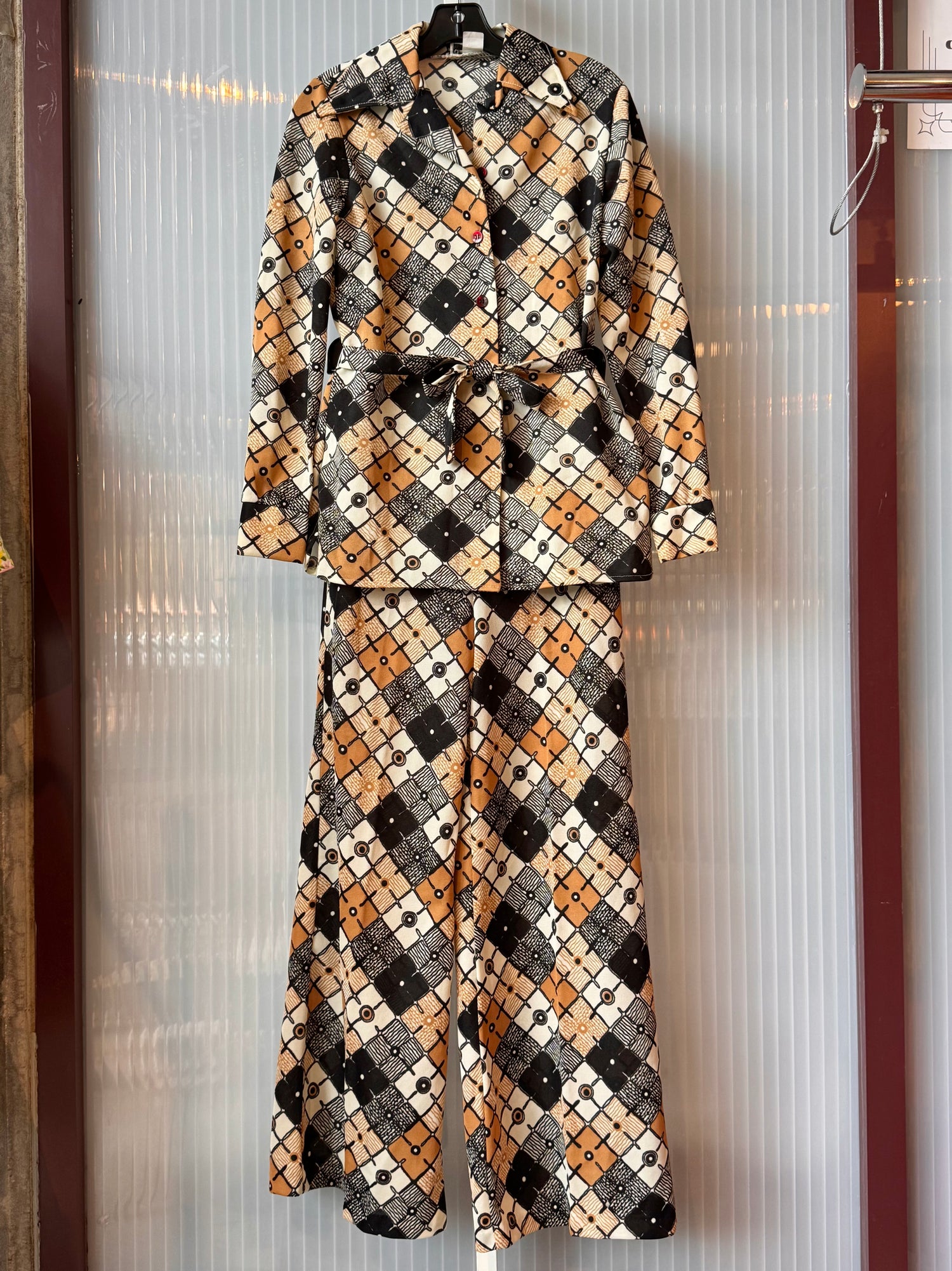1970s Brown & Orange Groovy Pattern Pants & Shirt Set