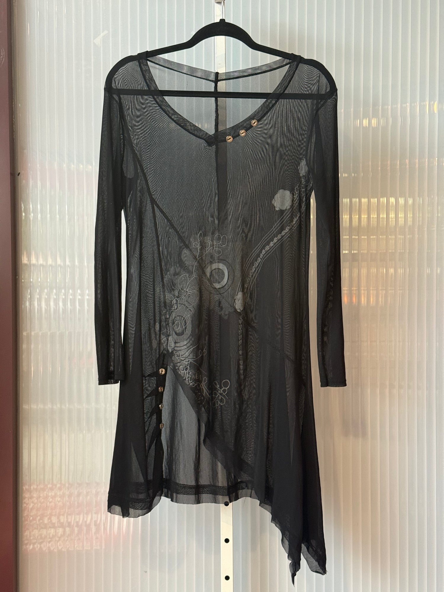 1990s Black Sheer Dress w/ Frutiger Metro Floral Print