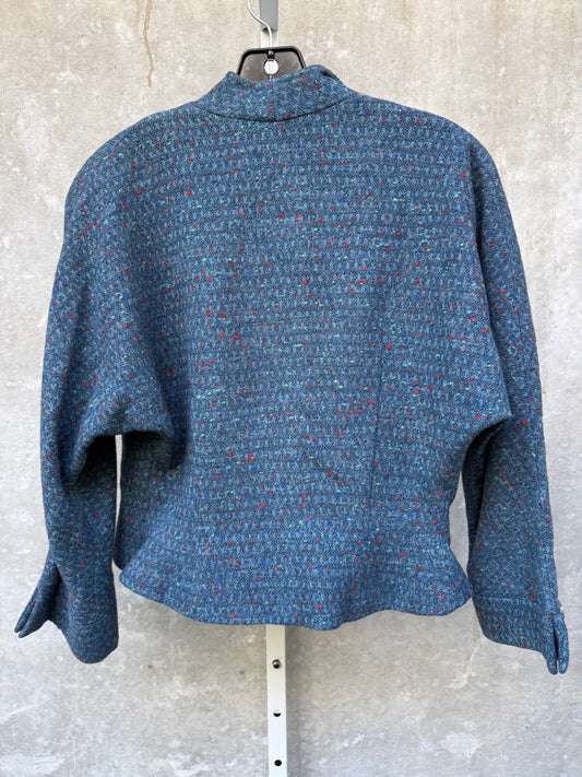 1970s Blue Wool Dolman Blazer w/ Resin Buttons