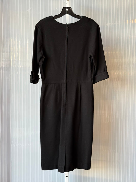 1960s Black Wool 3/4 Sleeve Sheath Dress