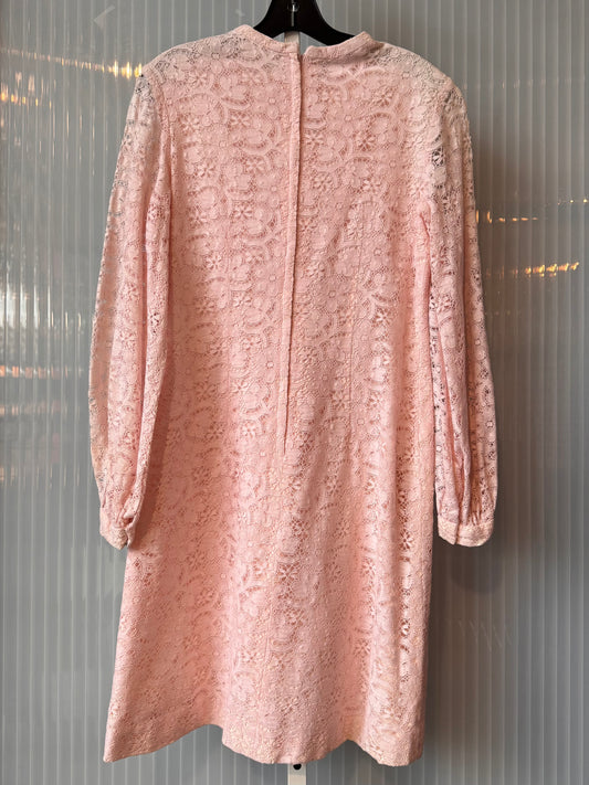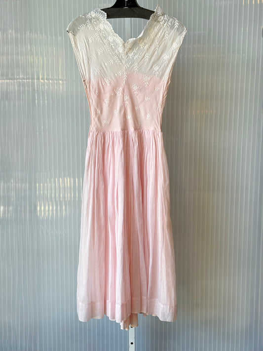 1960s Baby Pink Dress with Sheer Floral Embroidery Layer