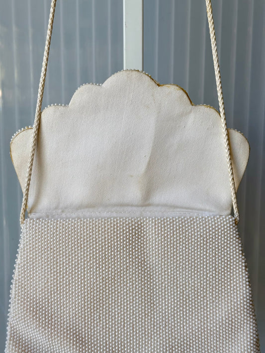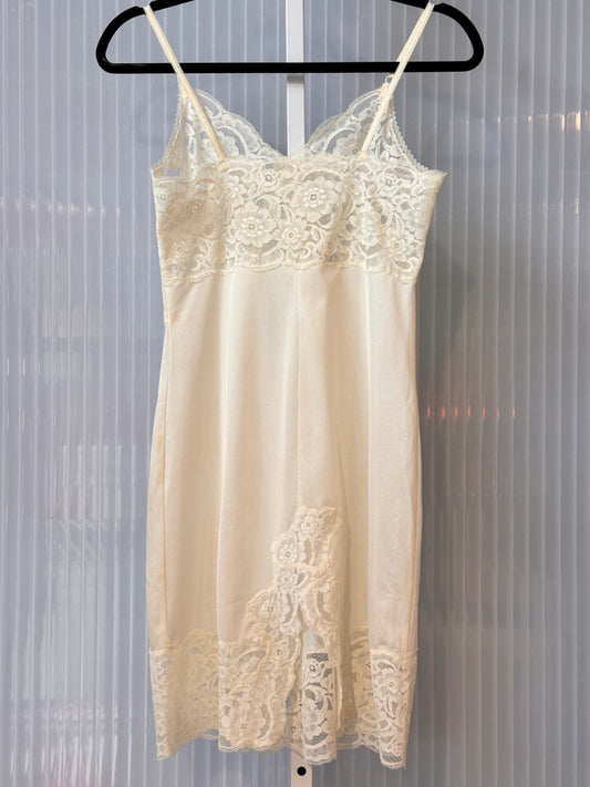 1960s White Chiffon Dress w/ Green Vine Pattern
