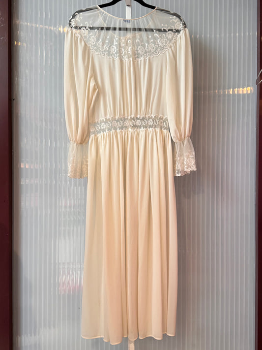 1970s Off White Robe with Lace Cuffs