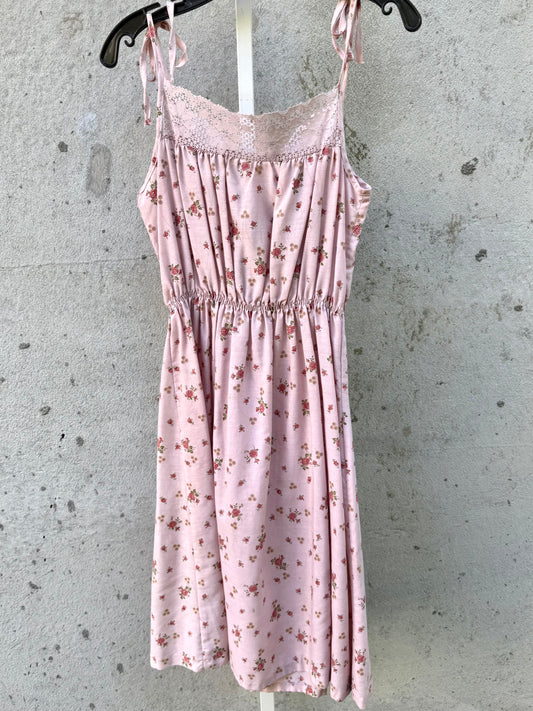 1970s Pink Floral Maxi Dress w/ Lace Details
