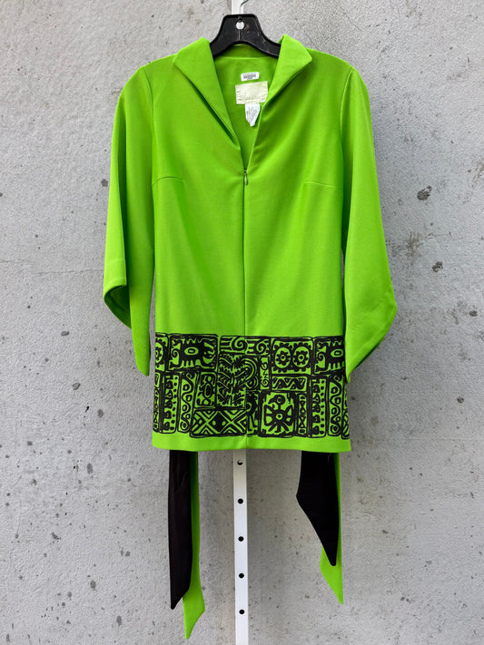 1970s Aztec-Inspired Green Top & Black Pants Set