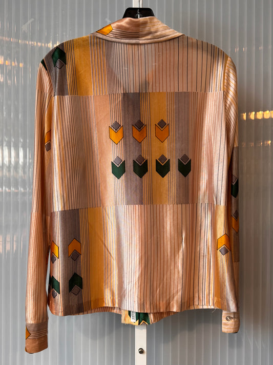 1970s Peach Patterned Point Collar Disco Shirt