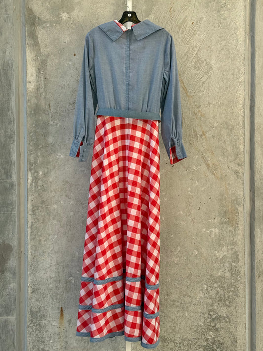1970s Red, White, & Blue Gingham Dress