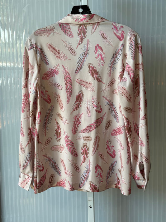 1970s Pink Long-Sleeve Shirt w/ Feather Print