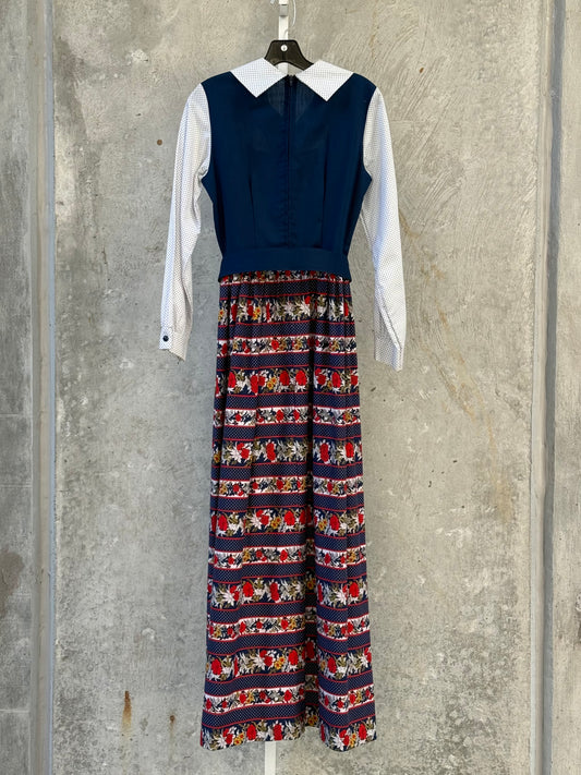1970s Sears Maxi Dress w/ Polka Dots & Florals