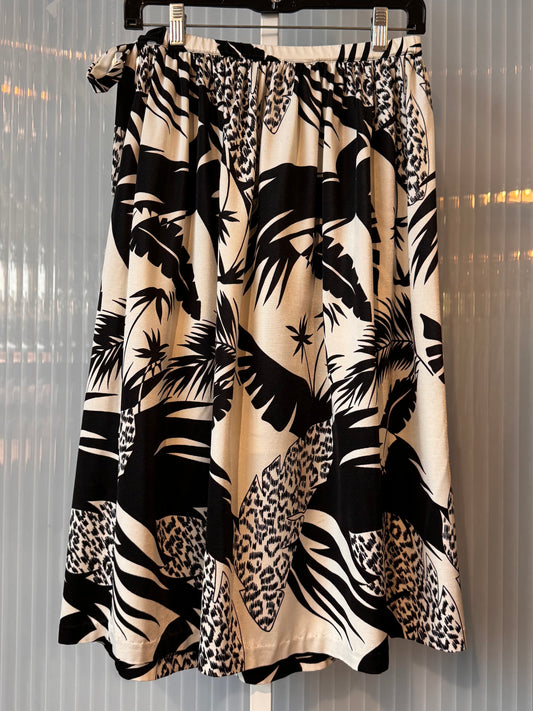 1970s Black & White Tropical Pattern Wrap Skirt