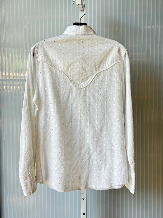 1970s Wrangler White Eyelet Western Shirt with Pearl Snaps
