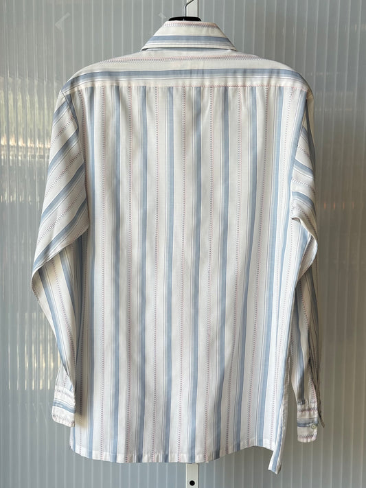 1970s Blue Striped Point Collar Button Up Shirt