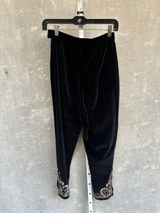 1970s Black Velvet Pants w/ Jeweled & Embroidered Hem