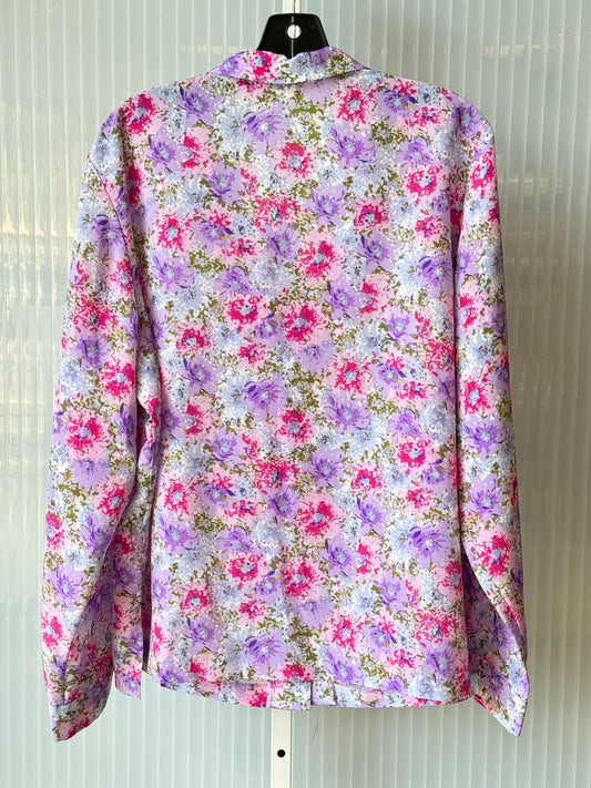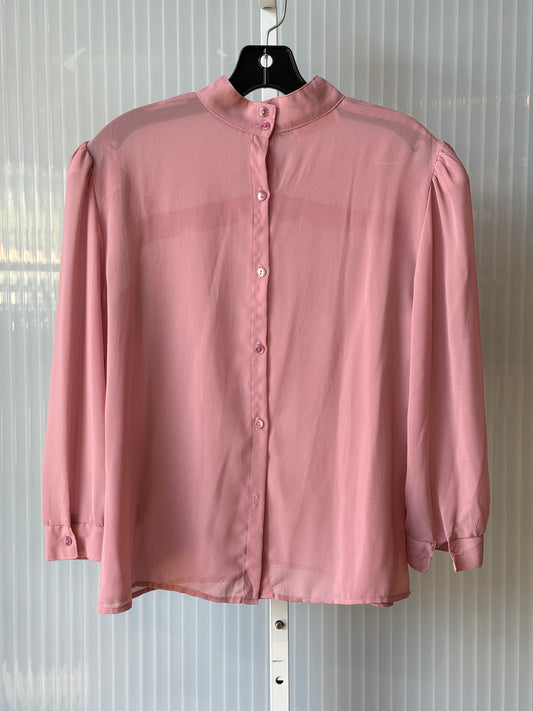 1970s Sheer Pink Long-Sleeve Blouse w/ Embroidery