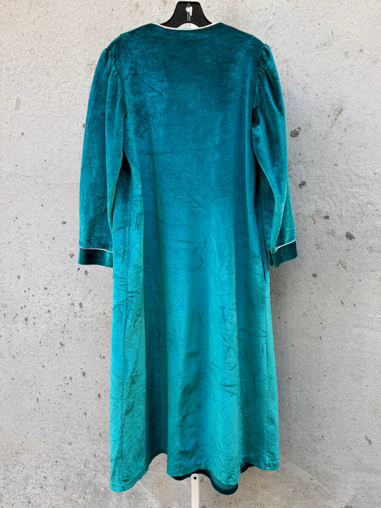 1980s Teal Velveteen Loungewear w/ Heart Appliqué