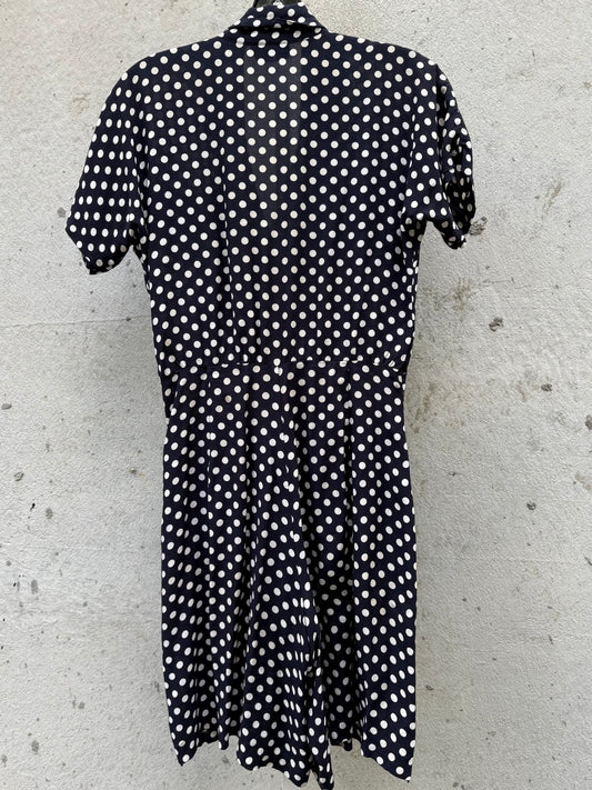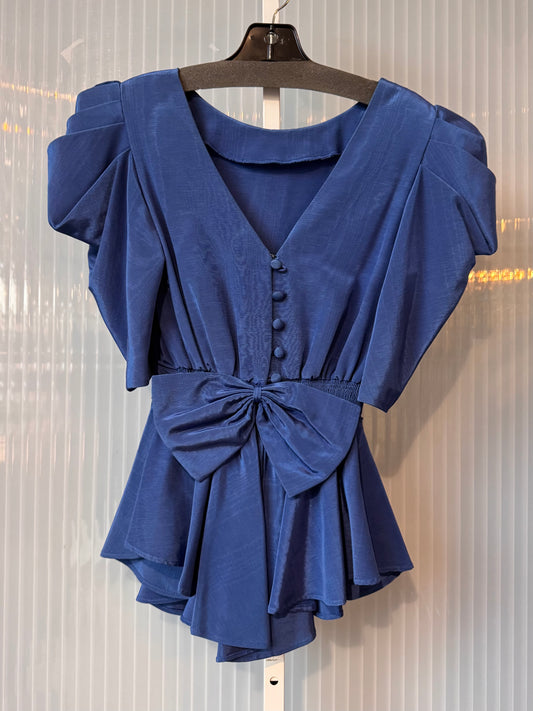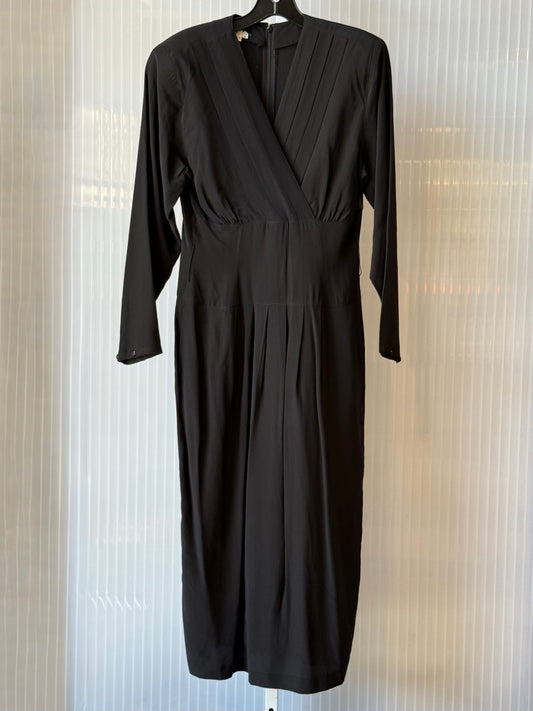 1980s Dark Blue Draped Dress with Silver Rhinestone Accents