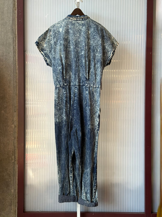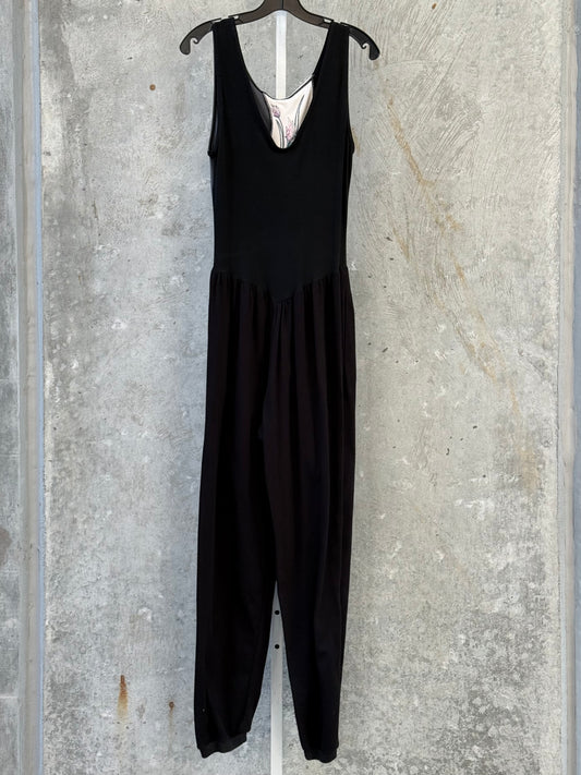 1980s Black Jumpsuit with Pink Floral Design Panels