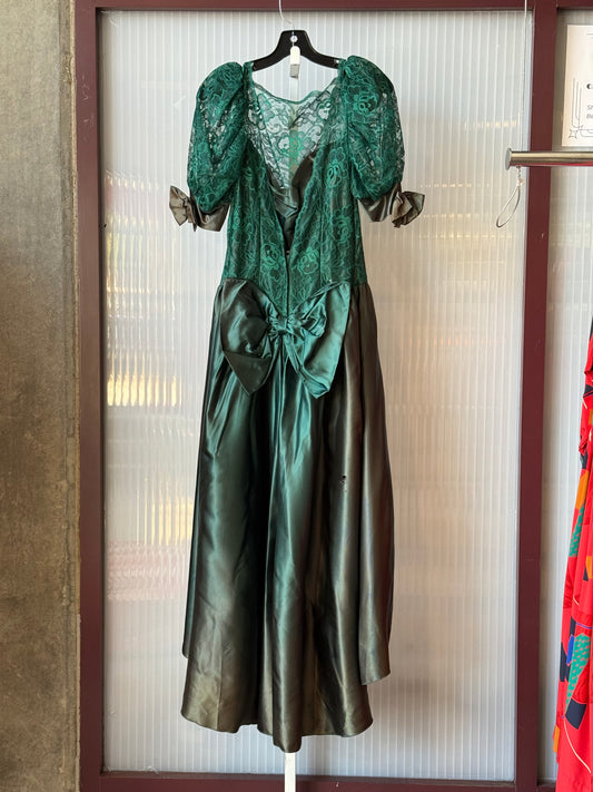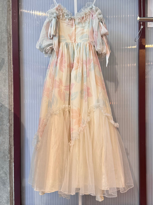 1980s Off-white & Pink Floral Off-Shoulder Gown