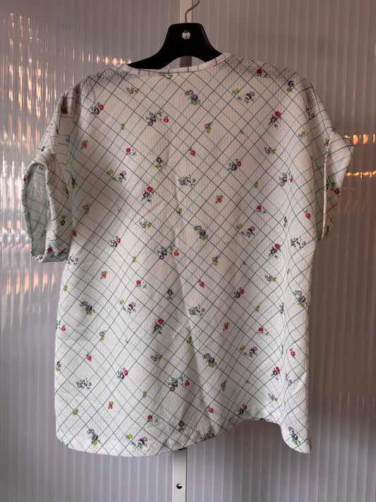 1980s White & Teal Floral Windowpane BlouseRegular price $24.00 USDRegular priceUnit price / per-