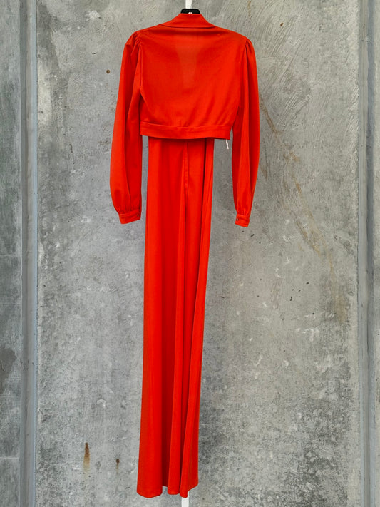 1970s Orange Dress & Bolero Set with Cream Ecru Lace