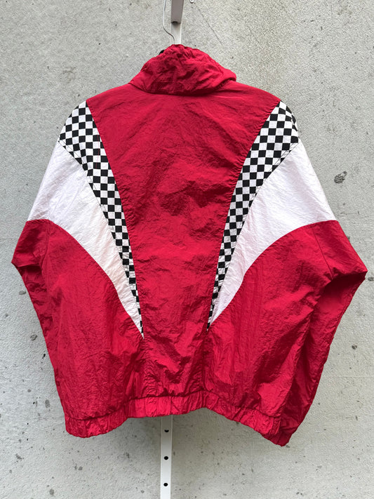 Red & White Checker Print 1/4 Zip Windbreaker
