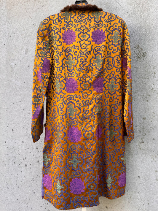 100% Silk Gold & Purple Chinese Jacket with Fur Trim