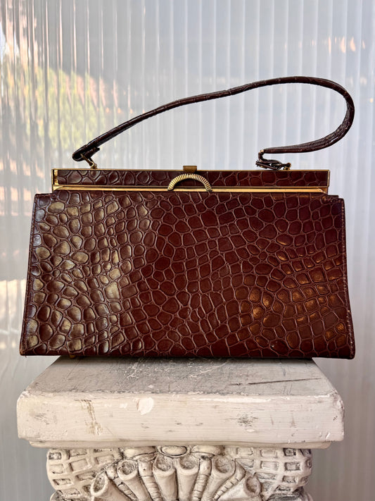 1950s Dark Brown Gator Embossed Hand BagRegular price $30.00 USDRegular priceUnit price / per-