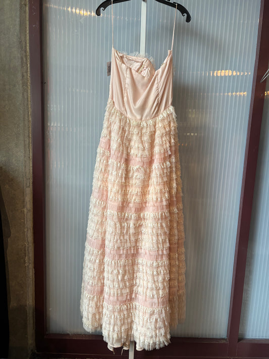 1950s Pink Ruffle Lace Floor Length GownRegular price $450.00 USDRegular priceUnit price / per-