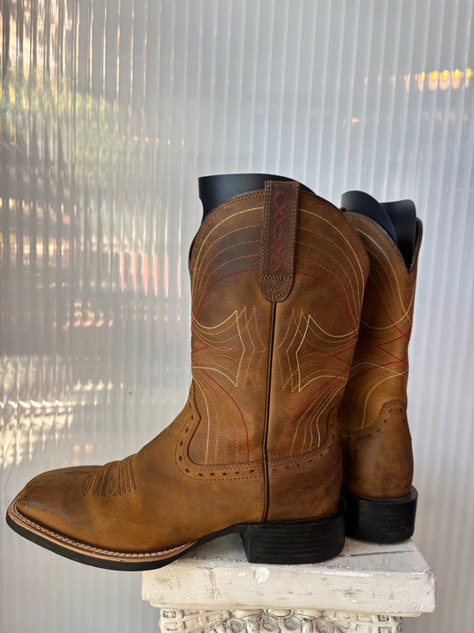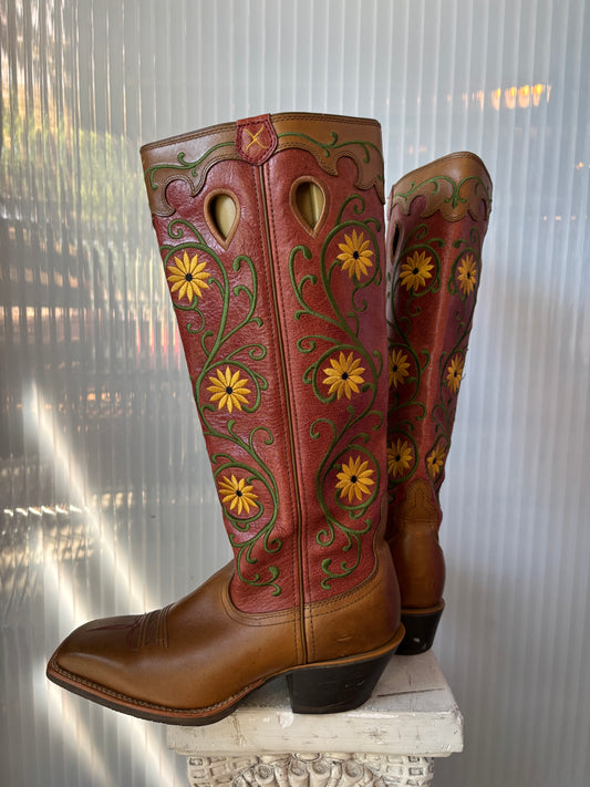 2 Tone Leather Square Toe Embroidered Cowgirl Boots size 9B