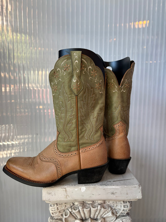 Ariat 2-Tone Green Tan Cowgirl Boots size 6B