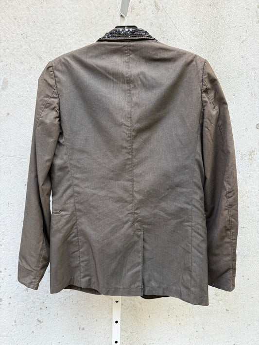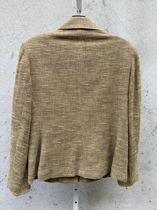 2000s Green Tweed Blazer Jacket with Floral Brooch