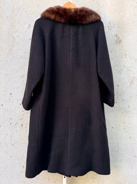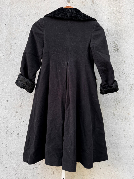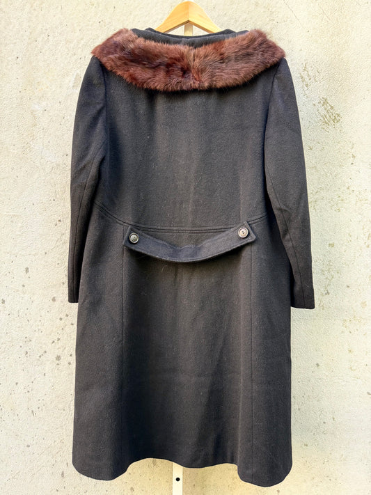 100% Wool Black Coat with Faux Fur Collar & Cuffs