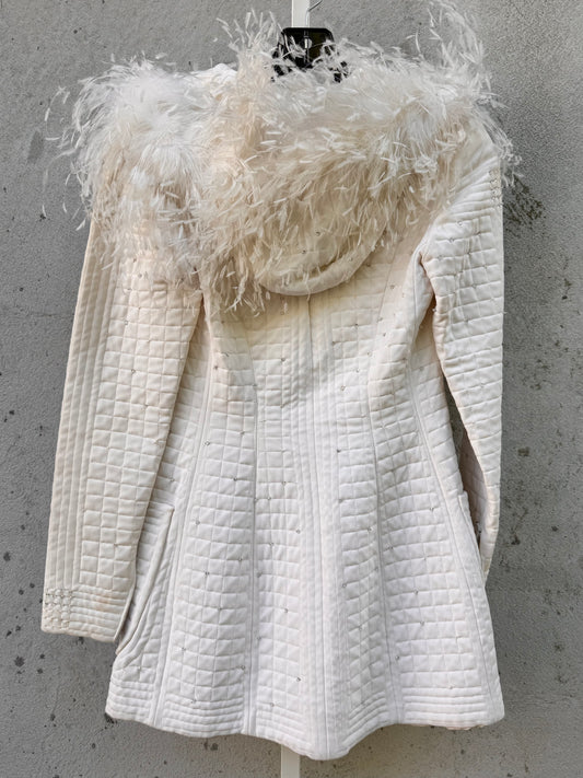 Jacques Fath Paris White Quilted Jacket with Feather Plummage