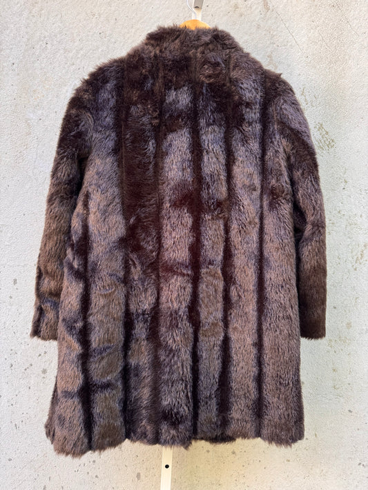 1970s Faux Fur Coat with Hood & Leopard Hem & Cuff