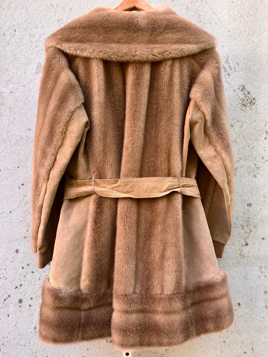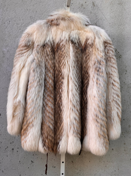 White Coyote Fur Coat w/ Inner Waist Cinch