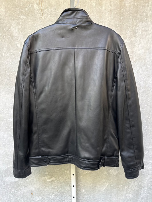 Calvin Klein Faux Black Leather Jacket with Padded Logo Lining