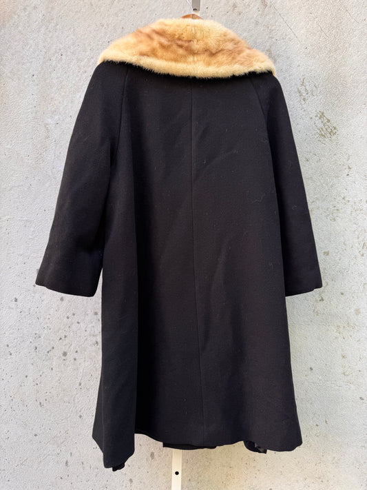 1960s Rich’s Black Wool Coat with Blonde Mink Collar