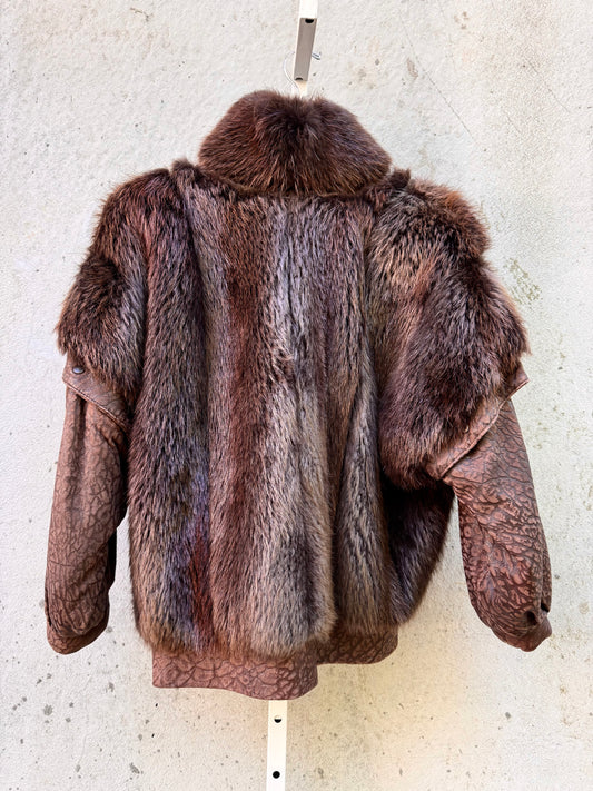 1980s Beaver Fur Leather Convertible Bomber Jacket / Vest