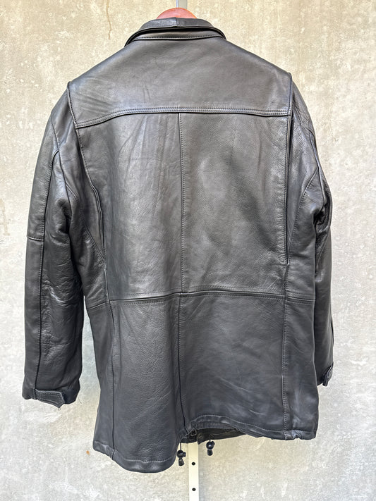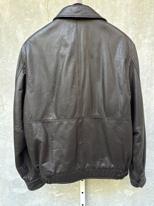 1990s Roundtree & York Dark Brown Leather Bomber Jacket
