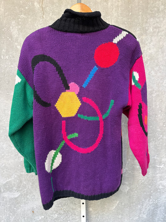 1980s Pink Knitted Floral Sweater w/ Pearls