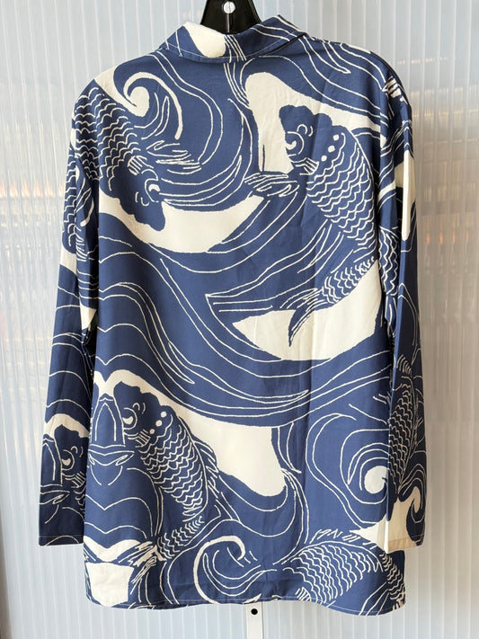 Blue & White Fish Print Collared Shirt