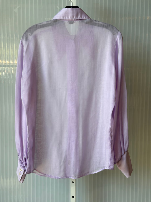 1970s Sheer Lavender Billow-Sleeve Button Up Blouse