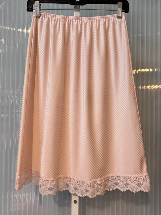 1970s Pink Pinstripe Skirt Slip with Lace Trim
