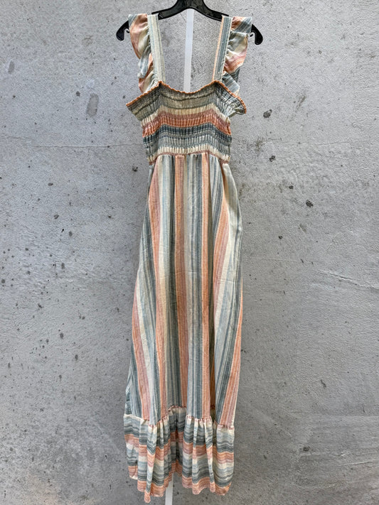 1970s Striped Smocked Sleeveless Maxi Dress