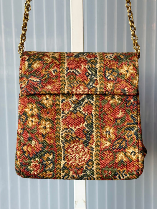 Carpet bag purse w/ Clasp Closure & Chain Straps