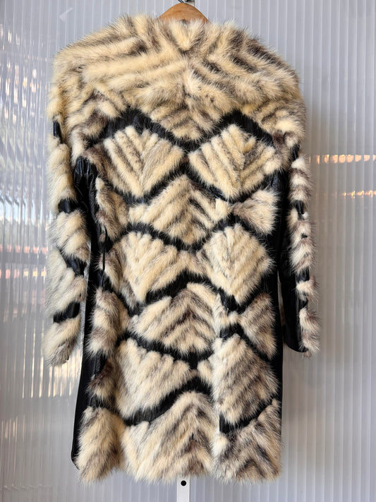 1970s Black Cross Mink Fur & Leather Coat